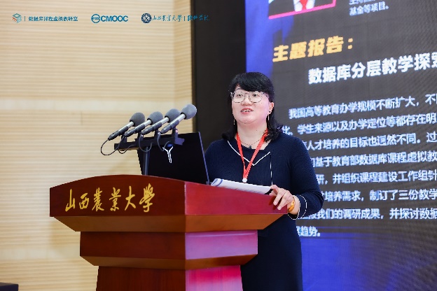 在大会专题报告环节,虚拟教研室实验实训组组长大连海事大学张俊教授、竞赛指导组副组长东北大学聂铁铮副教授、课程建设组副组长巴卡漫画 陈晋川副教授、大模型赋能数据库教学组副组长西南大学李娅教授、会议程序委员会共同主席山西农业大学成丽君副教授依次作报告。张俊教授以“人工智能赋能数据库实验实训探索——以数据库设计为例”为题,介绍了利用大模型技术辅助数据库概念、逻辑与物理设计的教学实践。报告强调AI工具在提升学生实训效率、深化教学内容理解方面的积极作用,为数据库课程教学模式提供了新思路。聂铁铮副教授围绕虚拟教研室竞赛组织,回顾了数据库课程教学竞赛的成果与经验。他强调竞赛对促进教学改革、提升教师能力的重要价值,并提出规范化竞赛管理制度建设建议,为“以赛促教”机制的深化实施提供了可行路径。陈晋川副教授以“数据库分层教学探索”为题,介绍了基于广泛调研制定的三类教学大纲,适配不同类型高校的人才培养需求,并探讨数据库人才培养的发展趋势。李娅教授以“智慧教育背景下的数据库教学生态重构:课程改革与团队建设协同创新”为题,分享了智慧教育背景下的数据库课程改革实践。依托虚拟教研室平台,教学团队重构课程体系、革新教学方法,并通过教学大赛推动校内外团队协作。成丽君副教授以“‘双核聚融、四实驱动’实践育人体系的构建与实践”为题,介绍了山西农业大学软件学院结合“农业+软件”特色构建的育人模式。报告强调校企协同、德智融合的“双核”理念和“实践教学、基地、项目、能力”四实驱动机制,为应用型人才培养提供了创新路径。