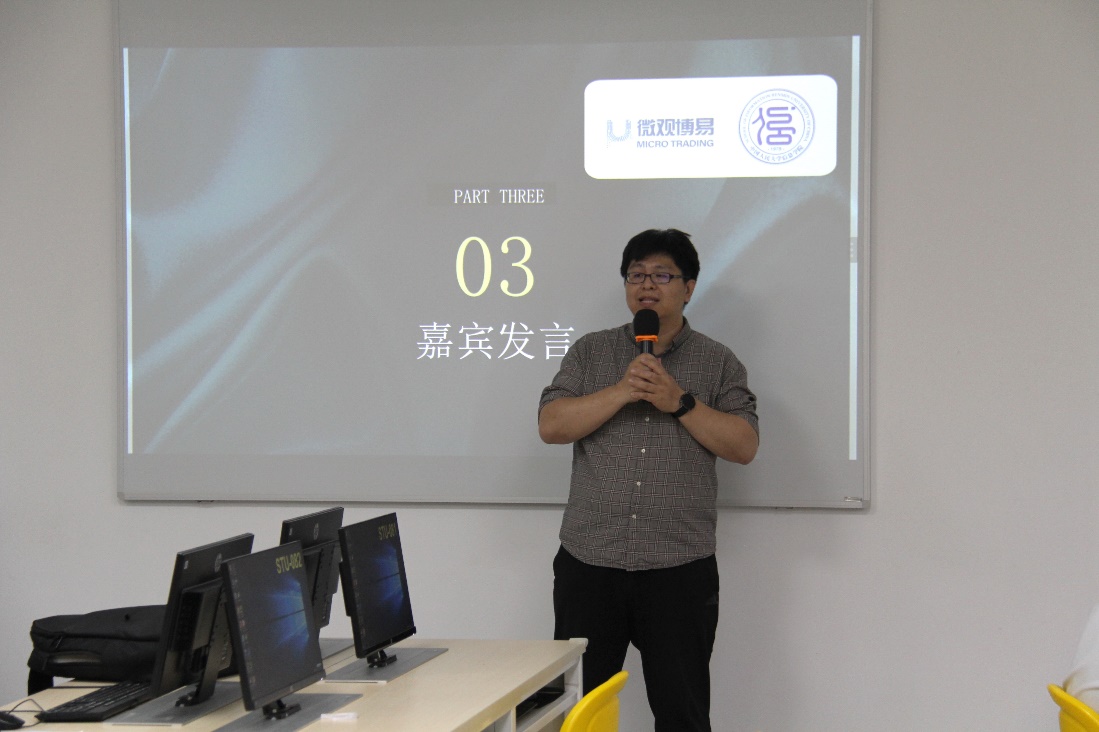 周先生代表赞助方微观博易公司发言,感谢学校给予机会和支持,感谢同学们积极参加这次程序设计竞赛,希望同学们能够保持这样的势头,加强学习、迎接挑战。周先生对微观博易公司进行了简要介绍,并欢迎同学们在未来加入微观博易,一同打造国内乃至全球顶尖的量化投资公司。