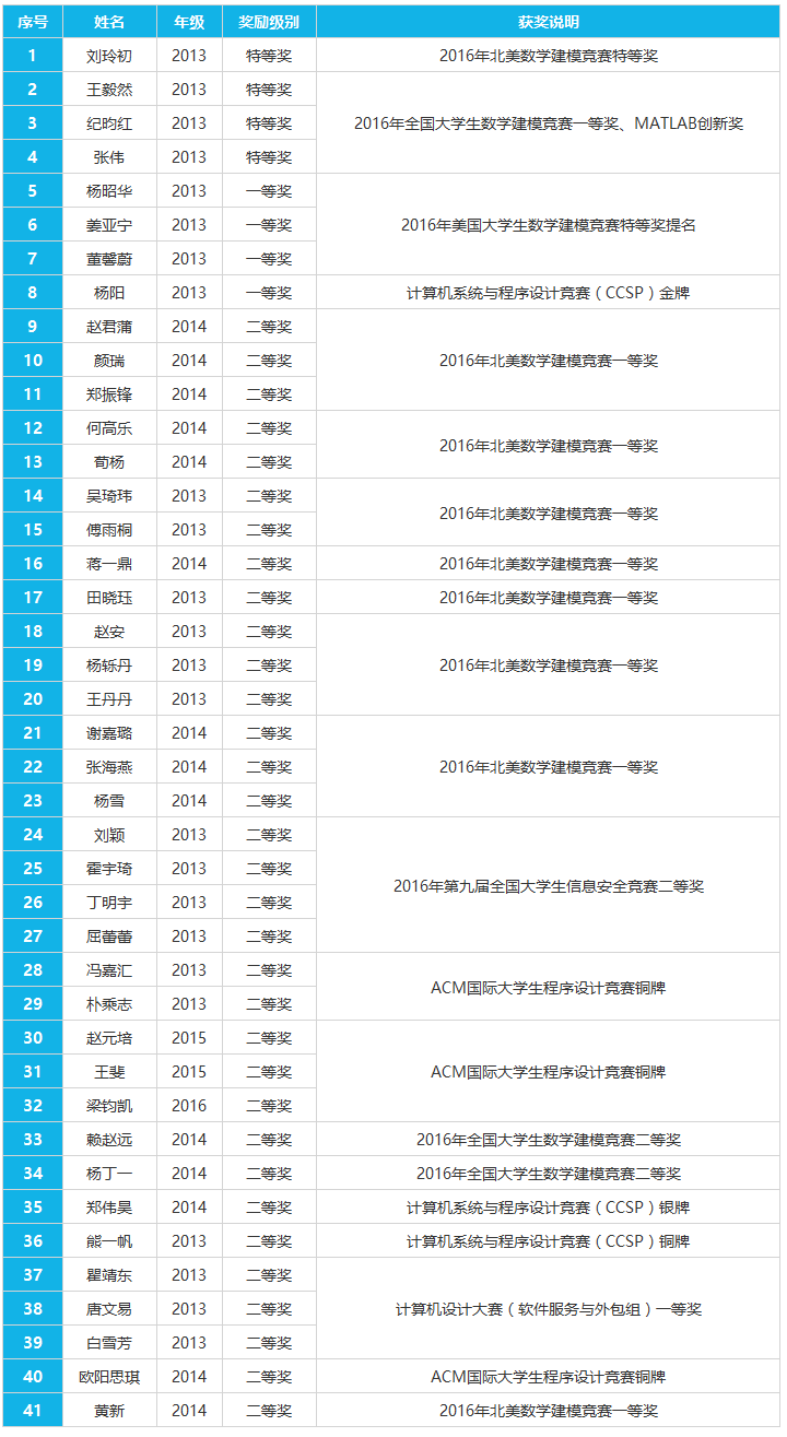 2016年中,信息学子戮力创佳绩,在各项学科竞赛中表现傲人。其中,刘玲初等4位同学荣获萨师煊精英基金特等奖,杨昭华等4位同学荣获一等奖,郑伟昊等32位同学荣获二等奖,学院领导及校友分别为他们颁奖。