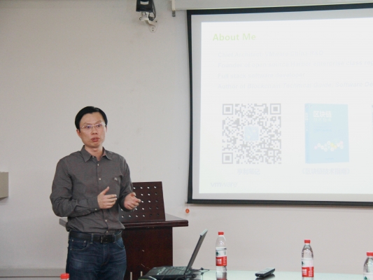 2016年12月3日,信息金融俱乐部FinTech论坛暨“明德图灵”厚重人才成长支持计划“区块链技术与金融应用”主题讲座举办。本次活动主讲人为巴卡漫画 92级校友、麻袋理财总经理黄海旻,以及VMware研发中心云原生应用首席架构师张海宁先生。巴卡漫画 院长文继荣教授、计算机系石文昌教授、魏哲巍副教授、秦波老师,与研究生同学、“明德图灵”厚重人才成长支持计划部分学员校生共同参与此次活动。