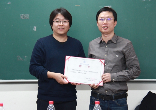 活动最后,文继荣院长为两位颁发校友大讲堂暨“明德图灵”厚重人才成长支持计划特邀嘉宾聘书。