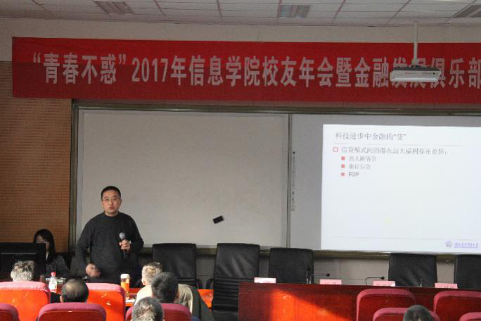 学院93级校友、对外经济贸易大学金融系主任王剑锋做了金融科技方面的报告。科技进步对金融业造成了不同程度的冲击,具体说明了融资交易是一种特殊的交易,借与还时间是分离的,融出风险可能变成事实,降低风险就需要在一些关键环节上采取措施。并且举例说明了征信体系并不足够发达,加强对于金融业务识别和监管的方法体系建设,对于各种金融创新设想,借用相关软件可以更好的实现。