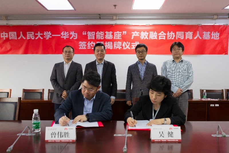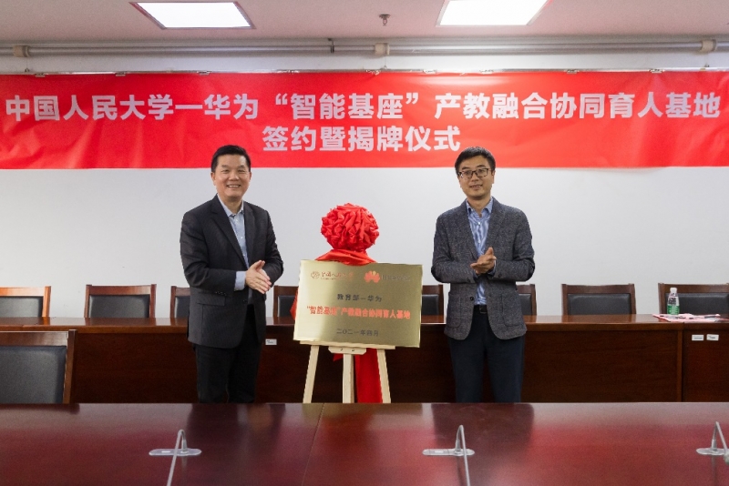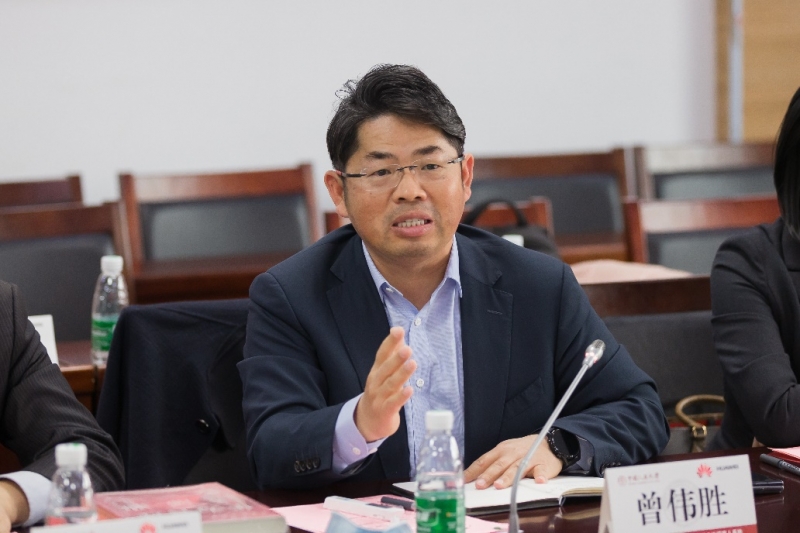 胡百精代表学校向华为各位领导、专家的到来表示热烈的欢迎,对“智能基座”产教融合协同育人基地的落成表示祝贺。基地的签约落地,必将进一步深化双方在信息技术领域的全方位合作,构筑更为紧密、可持续发展的合作机制与人才培养模式,合作培养更多适应国家战略、产业需求、未来发展的创新型人才。他对于基地的建设提出三点期待。一、学校要和一流企业一同瞄准时代最真实的问题,以育人为本,推动文理工多学科、产学研多方位的融合,培养社会人才;二、在协同育人的基础上,以华为科技精神和人大人工智能、信息科学作为桥接,探索在学术研究、企业价值等方面进行更加深入的切合双方特点的合作工作机制;三、基地建设要着眼于全球化、未来化,希望双方以“智能基座”基地为育人基石,将人文精华与理工科技相结合,面向全球、着眼未来,建设具有突出特色的“智能基座”育人基地,推动文理工、产学研的产教融合协同育人的新发展。